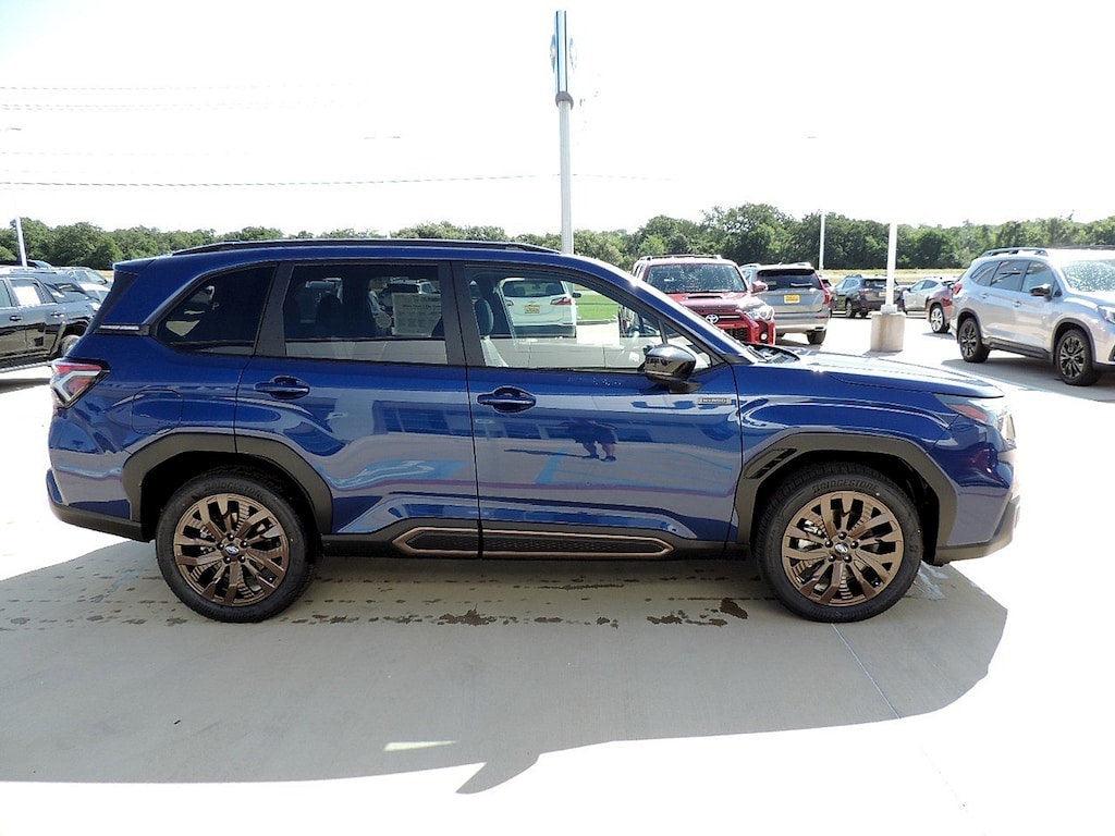Introducing the 2025 Subaru Forester Sport Hybrid, a perfect blend of performance and efficiency in a sleek sapphire blue pearl exterior. This certified pre-owned SUV is equipped with a robust 2.5L H-4 gasoline direct injection engine, delivering 162 horsepower while maintaining impressive fuel economy. Designed for versatility and adventure, the Forester Sport Hybrid features all-wheel drive (AWD), ensuring stability and control in various driving conditions. With its spacious gray interior, this vehicle offers both comfort and functionality, making it an ideal choice for families and outdoor enthusiasts alike. Emphasizing Subaru's commitment to safety, the Forester comes with a suite of advanced safety features, providing you peace of mind on every journey. Whether you're navigating city streets or exploring remote trails, this hybrid SUV delivers a smooth and responsive driving experience. With its combination of hybrid technology, all-wheel drive capability, and renowned Subaru durability, the 2025 Forester Sport Hybrid is ready for your next adventure. Discover the perfect balance of style, efficiency, and reliability today!